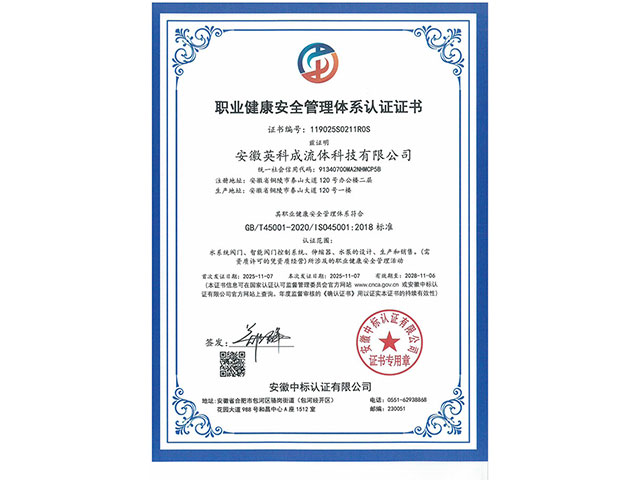 • 職業(yè)健康安全管理體系認(rèn)證證書(shū)